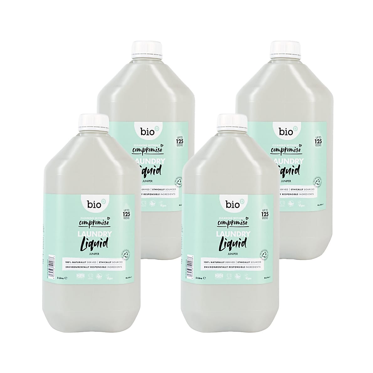Bio D Geconcentreerd Wasmiddel met Jeneverbes is een natuurlijk wasmiddel dat superzacht maar supereffectief is met een rijke geur. Dit veelzijdige wasmiddel kan gebruikt worden in zowel wasmachines als voor het wassen van delicate stoffen met de hand. Koop je Bio-D wasmiddel in bulk met deze bundel van 4 refills van 5 liter. Bespaar geld en verminder plastic afval van je dagelijkse huishoudelijke schoonmaakartikelen.
