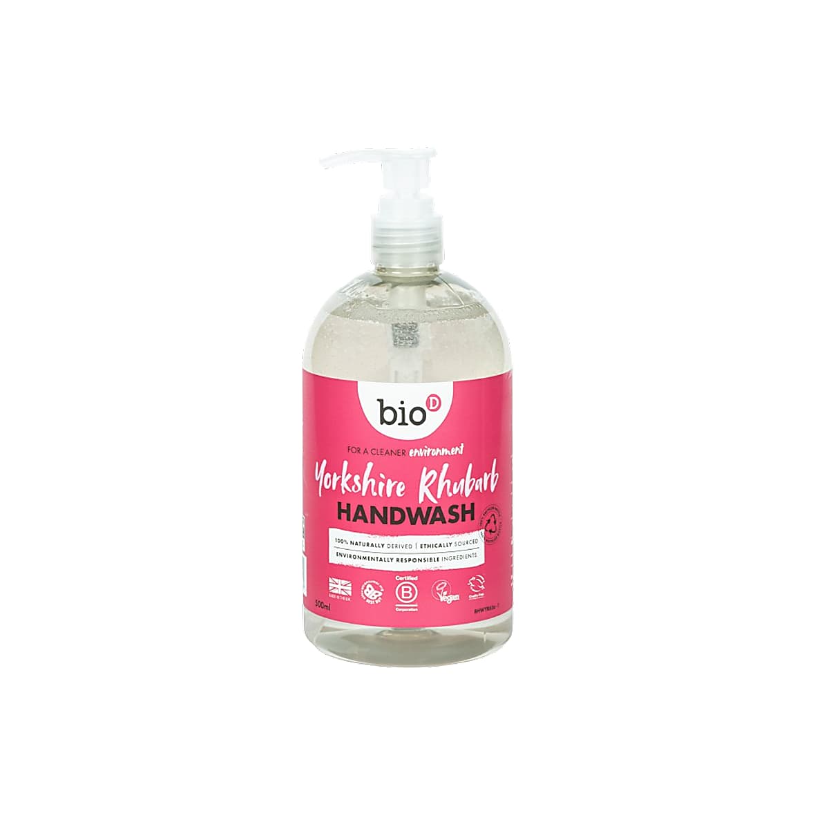 Ervaar de heerlijke mix van pittige en zoete Yorkshire rabarber bij elke handwasbeurt met Bio-D Handzeep Yorkshire Rabarber.
