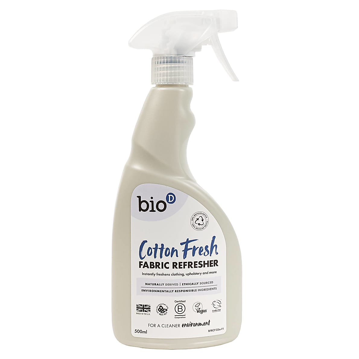 Hou je huis en textiel op natuurlijke wijze fris met de Bio-D Textieverfrisser - Cotton Fresh. Deze spray op plantaardige basis maskeert geurtjes niet alleen, maar neutraliseert ze bij de bron, waardoor kleding, bekleding, gordijnen, beddengoed en interieurtextiel weer fris en fris ruiken. Perfect om textiel tussen wasbeurten door op te frissen. Het product is zacht voor de gevoelige huid en vrij van agressieve chemicaliën, waardoor het een veilige, natuurlijke manier is om voor je huis en dagelijkse benodigdheden te zorgen.