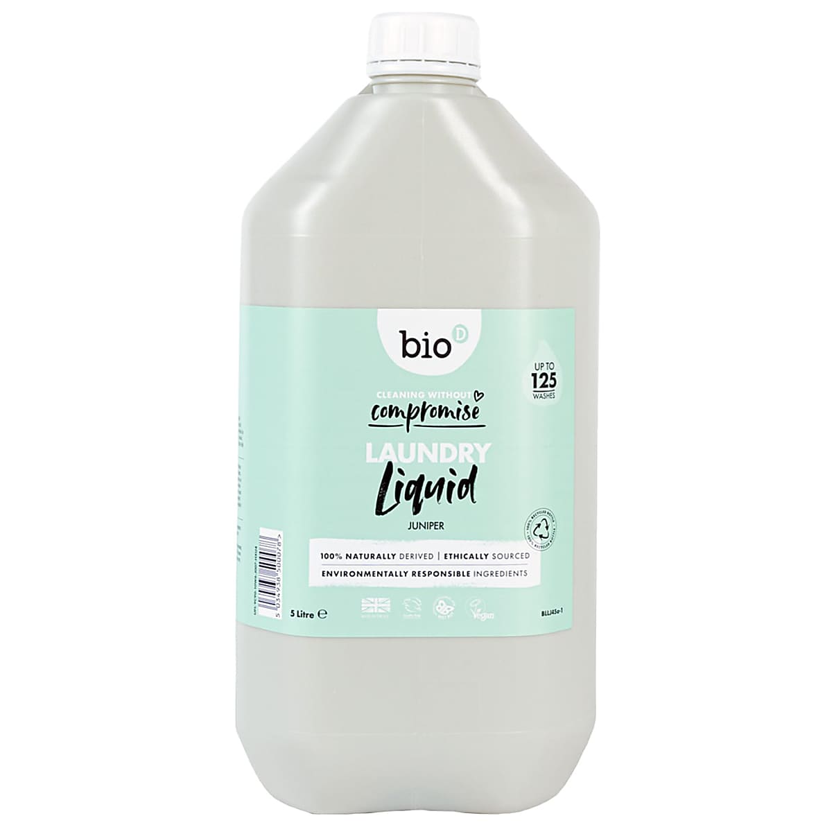 Vul je Bio-D Vloeibaar Wasmiddel Jeneverbes & Zeewier - 1L bij met deze navulling van 5L.