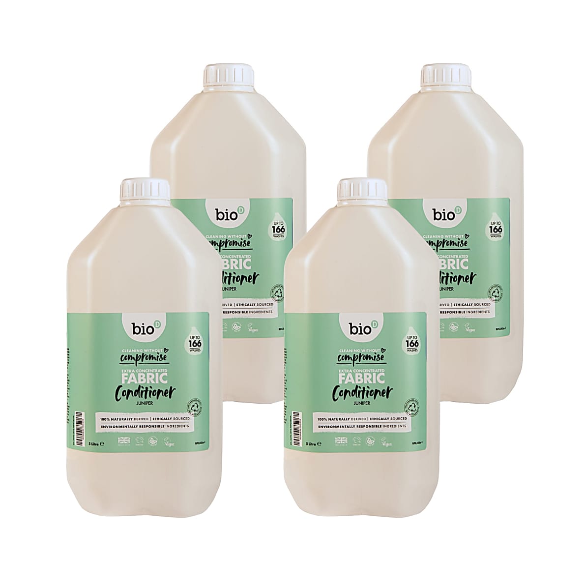 Bio D Extra Geconcentreerde Wasverzachter met Jeneverbes is een veelzijdige wasverzachter met jeneverbesolie die kleding zacht, statisch en subtiel geparfumeerd maakt. Deze natuurlijke wasverzachter kan gebruikt worden in zowel wasmachines als voor het wassen van delicate stoffen met de hand. Koop je Bio-D wasverzachter in bulk met deze bundel van 4 refills van 5 liter. Bespaar geld en verminder plastic afval van je dagelijkse huishoudelijke schoonmaakartikelen.