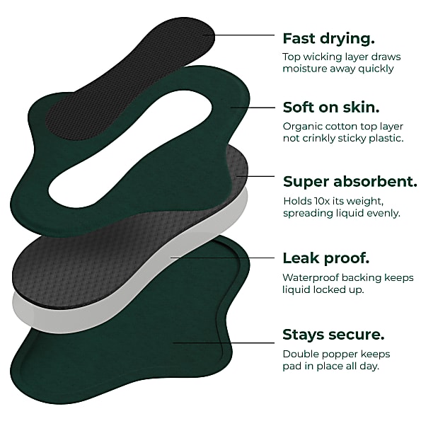 Dame Herbruikbaar Maandverband nacht houdt je tot 8 uur droog. Het trekt snel vocht weg van je huid en absorbeert het equivalent van 2 gewone tampons of maandverband. De DAMEdry™ technologie biedt 5 veilige lagen en de waterdichte achterkant houdt vocht vast.