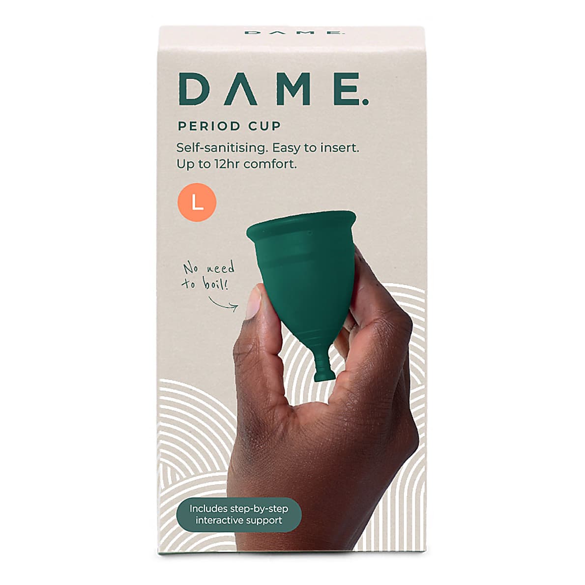 De DAME Menstruatiecup is gemaakt van zacht en flexibel TPE van medische kwaliteit en wordt aangedreven door natuurlijke, biocidevrije Saniconcentraten™, waardoor hij bestand is tegen 99,9% van de bacteriën en virussen. Het betekent ook dat je niet meer hoeft te koken of te ontsmetten tussen twee draagbeurten door, gewoon afspoelen, afvegen en opnieuw gebruiken.
