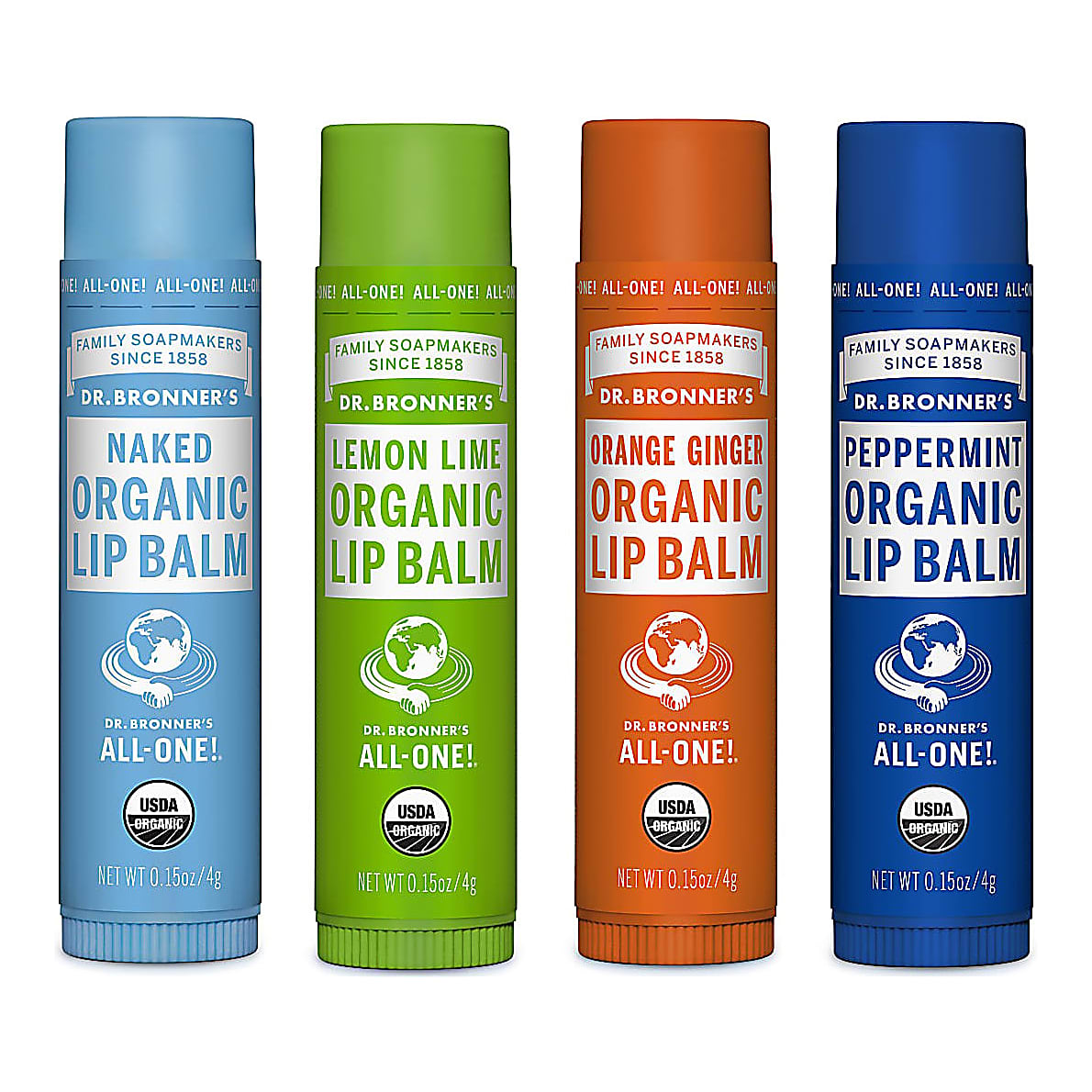 Dr Bronner's organische lippenbalsems bevatten organische bijenwas en een hebben een beschermende werking. Ze bevatten ook jojoba, avocado en hennep oliën. Deze geven extra hydratatie.