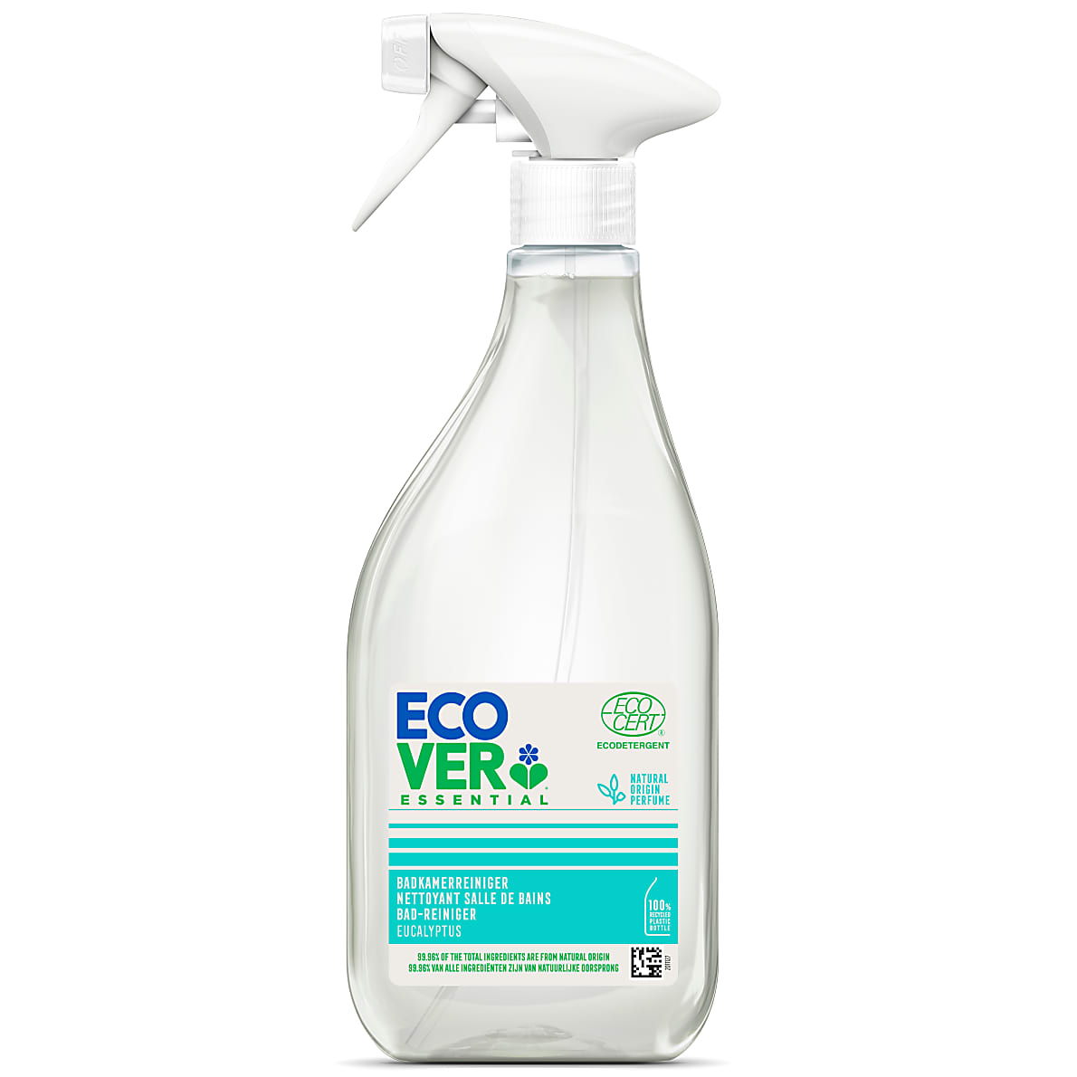 Ecover Essential Badkamerreiniger is een handige schoonmaakspray die afrekent met zeepresten en vuil en je badkamer weer laat glanzen. De badkamer reinigingsspray is samengesteld uit vegan en biologisch afbreekbare ingrediënten en bevat enkel parfums van natuurlijke oorsprong. Na het poetsen met deze eco badkamerreiniger ruikt je badkamer heerlijk fris naar munt en eucalyptus. Je kan deze Ecover badkamer reiniger ook perfect gebruiken op verticale oppervlakken zoals de wand van je douche.