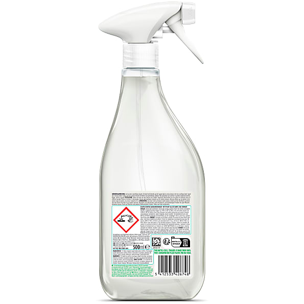 Gebruik: Verstuif rechtstreeks op het oppervlak en veeg schoon met een droge of vochtige doek. Op hardnekkige vlekken kan je de spray enkele minuten laten inwerken en nadien afspoelen met water. Niet gebruiken op marmer en andere kalksteensoorten.