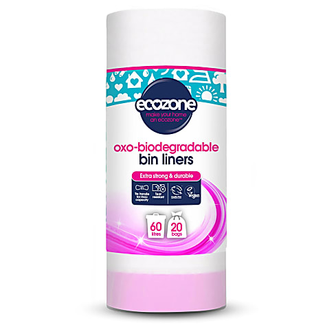 Ecozone's vuilniszakken zijn gemaakt met 100% biologisch afbreekbare materialen. De tassen zijn ontworpen om te passen in de meeste huishoudbakken en bieden plaats aan 60 liter afval. Deze zakken zijn extra sterk en scheurbestendig, zelfs als ze nat zijn. Als je klaar bent met de voering, hoef je alleen maar het trekkoord vast te binden om morsen te voorkomen en vervolgens af te voeren.