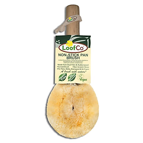 Je anti-aanbakpannen voorzichtig schoonmaken en tegelijkertijd hardnekkige etensresten aanpakken doe je met deze zachte borstel van LoofCo. Deze borstel is handgemaakt in Sri Lanka van natuurlijke sisalvezels en heeft een gladde steel van alstoniahout. Hij reinigt grondig zonder delicate oppervlakken te beschadigen. Duurzaam, volledig plasticvrij en ontworpen voor dagelijks gebruik.