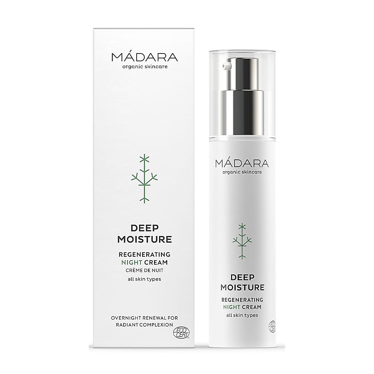 's Avonds na het reinigen en het gebruik van een Mádara toner aanbrengen op de huid van gezicht en nek.
