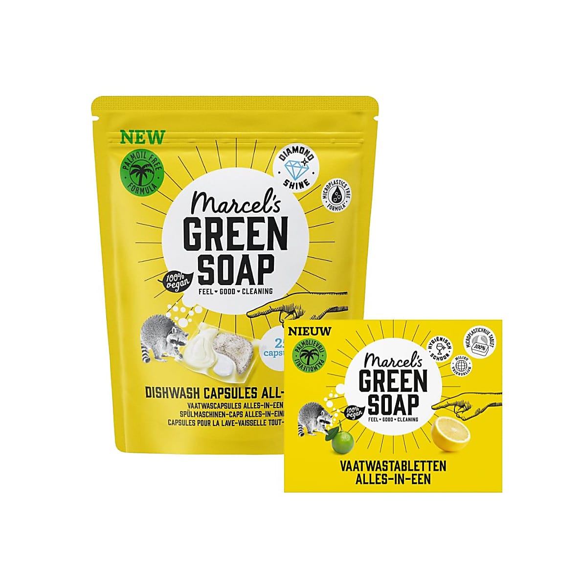Kan je niet kiezen tussen Marcel's Green Soap vaatwastabletten en vaatwascapsules, dan is deze Vaatwas Bundel de perfecte duurzame oplossing. Zo kan je met een gerust hart je vaatwasmachine aan ‘t werk zetten.