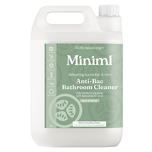 Transformeer je badkamer met de natuurlijke Miniml Antibacteriële Badkamerreiniger Komkommer & Munt, waarvan bewezen is dat hij 99,9% van de bacteriën verwijdert zonder agressieve chemicaliën.