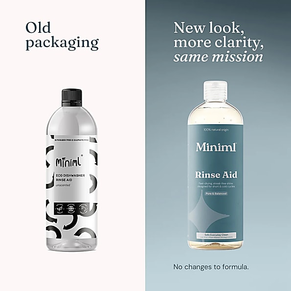 Miniml Glansspoelmiddel maakt gebruik van de kracht van de natuur om je vaat brandschoon en streeploos achter te laten.