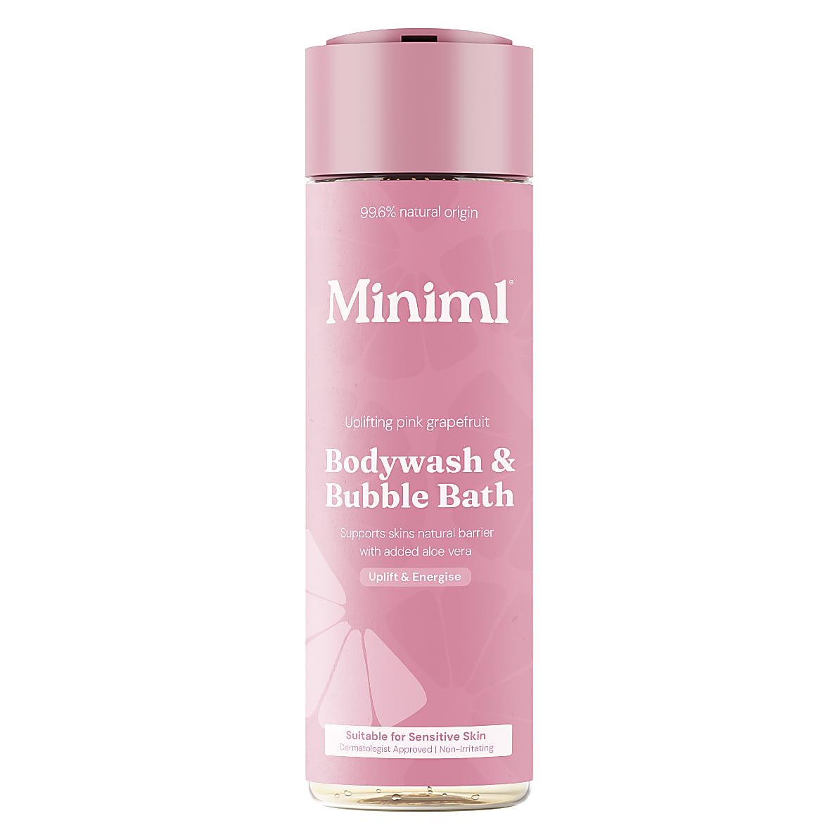 Verfris je huid en zintuigen met deze verkwikkende Pink Grapefruit Body Wash en Bubble Bath van Miniml. Het product is samengesteld uit natuurlijke etherische oliën en zorgt voor een milde, schuimende reiniging, waardoor je huid schoon, gehydrateerd en licht geparfumeerd aanvoelt.
