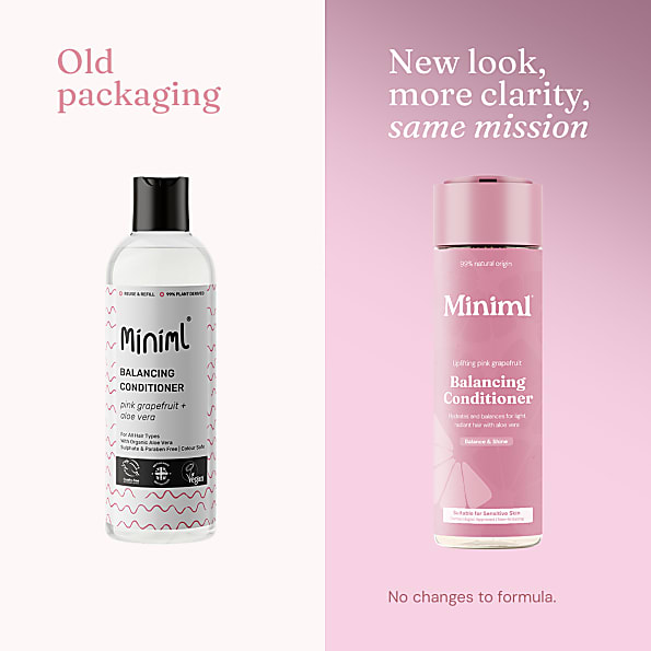 Ervaar natuurlijk evenwichtig, gezond haar met de verkwikkende Pink Grapefruit Balancing Conditioner van Miniml. Deze lichte, sulfaatvrije formule, verrijkt met roze grapefruit en aloë vera, voedt het haar op milde wijze en herstelt de balans bij normaal haar. Perfect voor dagelijks gebruik: het haar voelt zacht en fris aan en ruikt heerlijk dankzij 100% natuurlijke etherische oliën.