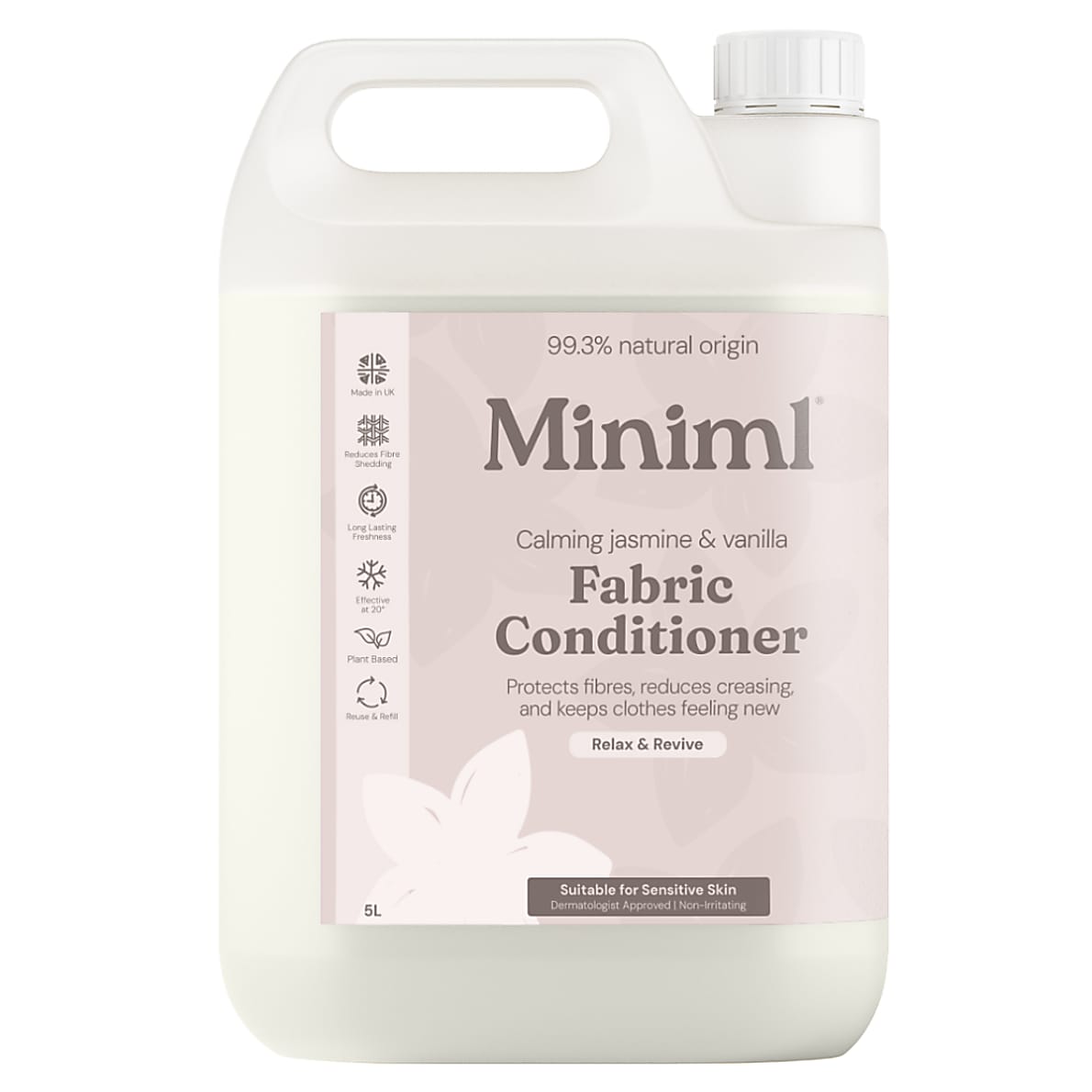 Miniml Wasverzachter Wilde Jasmijn & Vanille is gemaakt van natuurlijke verzachtende middelen om de vezels te beschermen en maakt kleding zacht, heerlijk geurend en statischvrij.