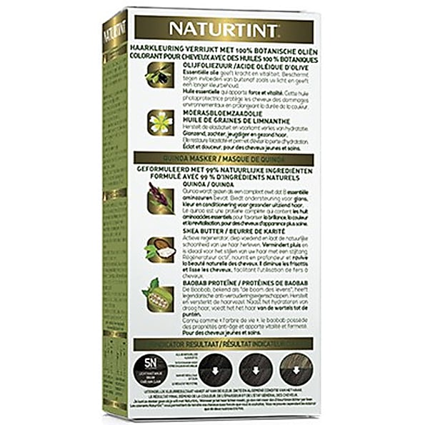 Naturtint Permanente Haarverf 5N Licht Kastanjebruin met 100% grijsdekking is vrij van ammoniak en geeft je haar een intense, natuurlijke en stralende kleur. De innovatieve en zachte formule, verrijkt met actieve plantaardige ingrediënten, is snel en gemakkelijk te gebruiken.