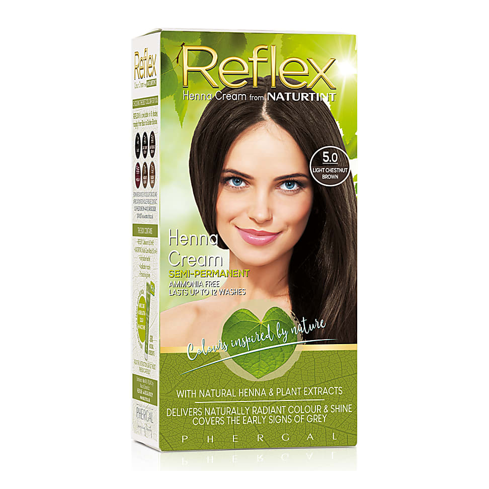 Reflex Semi-Permanente Kleurcrème 5.0 Licht Kastanje Bruin van Naturtint versterkt je natuurlijke kleur, maakt het haar donkerder of kleurt de eerste tekenen van grijs met een zachte kleurcrème. De kleurpigmenten worden op elke haarvezel aangebracht, waardoor de eerste tekenen van fijn grijs haar bedekt worden en het haar een natuurlijke glans krijgt.