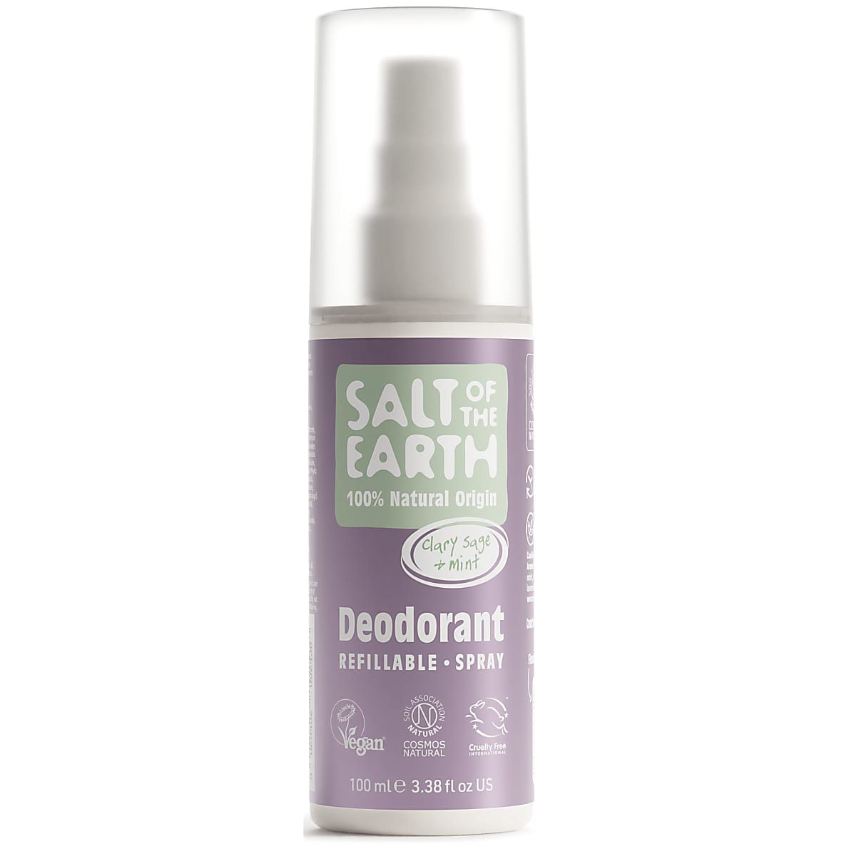Voel de verfrissende uitbarsting van munt, het kalmerende comfort van scharlei en de diepte van kruidige ondertonen met Salt of the Earth Clary Sage & Mint Deodorant Spray.
