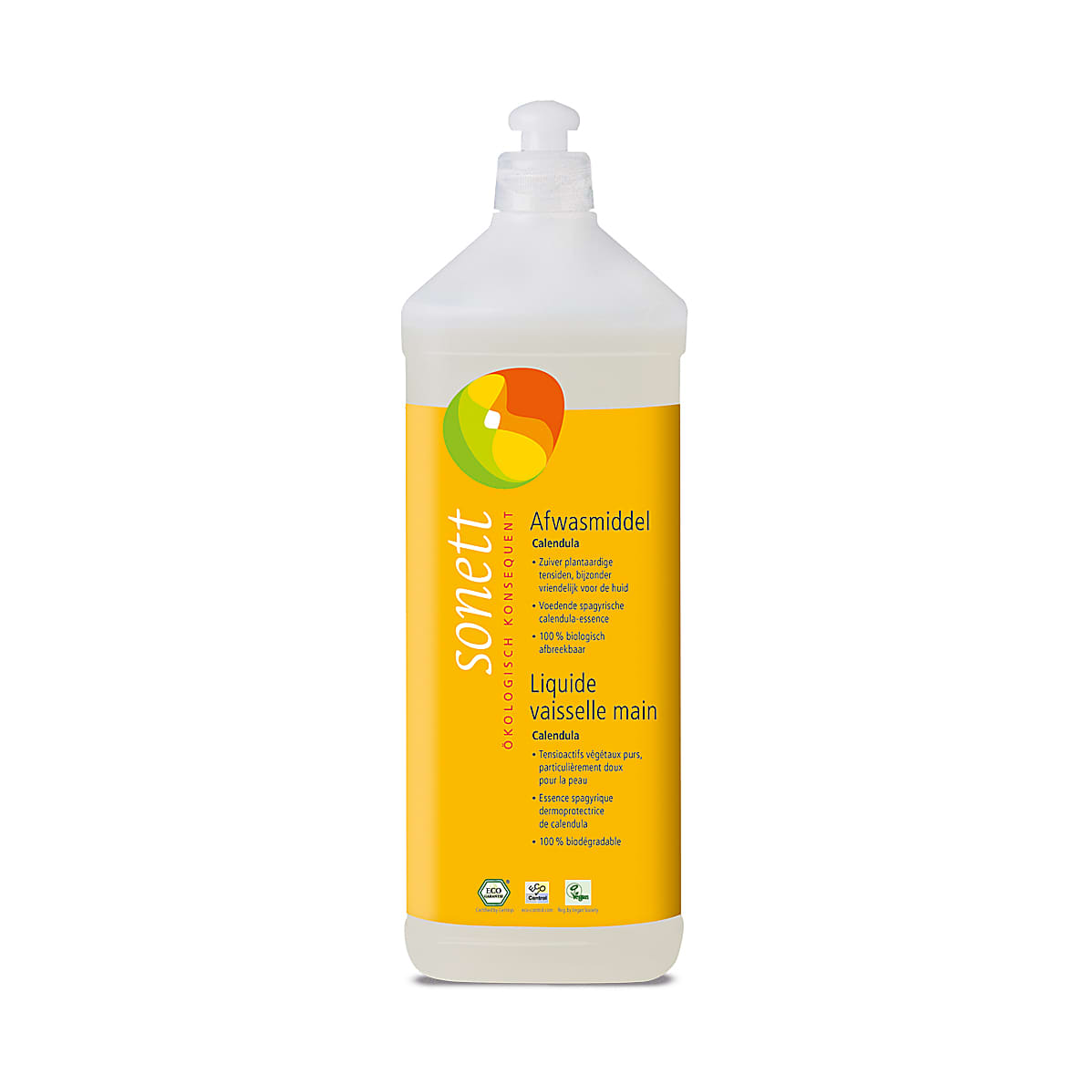 Voedende spagyrische calendula-essence en zuiver plantaardige tensiden, bijzonder vriendelijk voor de huid, zuinig en effectief.