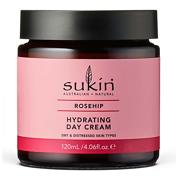 Sukin Rose Hip Hydrating Day Cream combineert Rosehip Oil en Granaatappel. Helpt de uitgedroogde huid te verlichten en om bij vroegtijdige tekenen van veroudering.