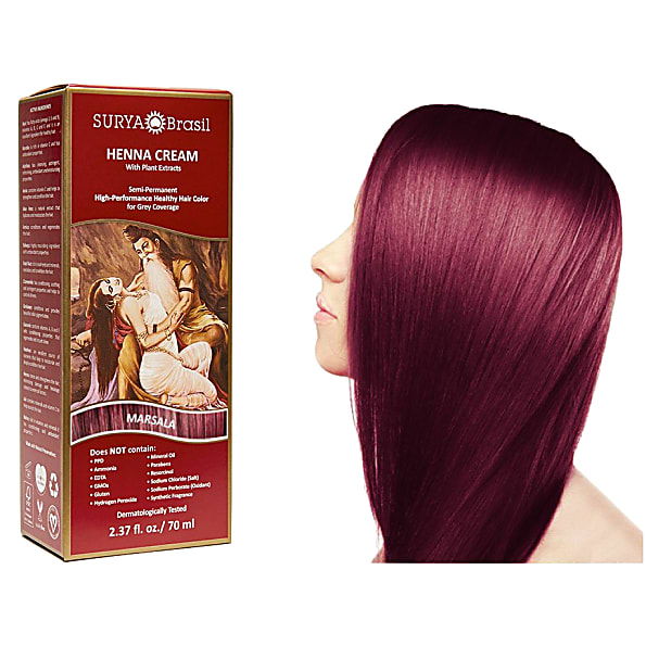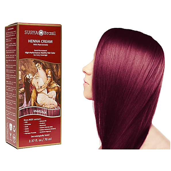 Surya Brasil's hoogwaardige Henna Cream Color is een anti-oxidant, rijke semi-permanente haarkleur die het haar doordrenkt met weelderige, levendige kleuren. Tegelijkertijd voedt het het haar met duurzaam geoogste plantaardige ingrediënten.