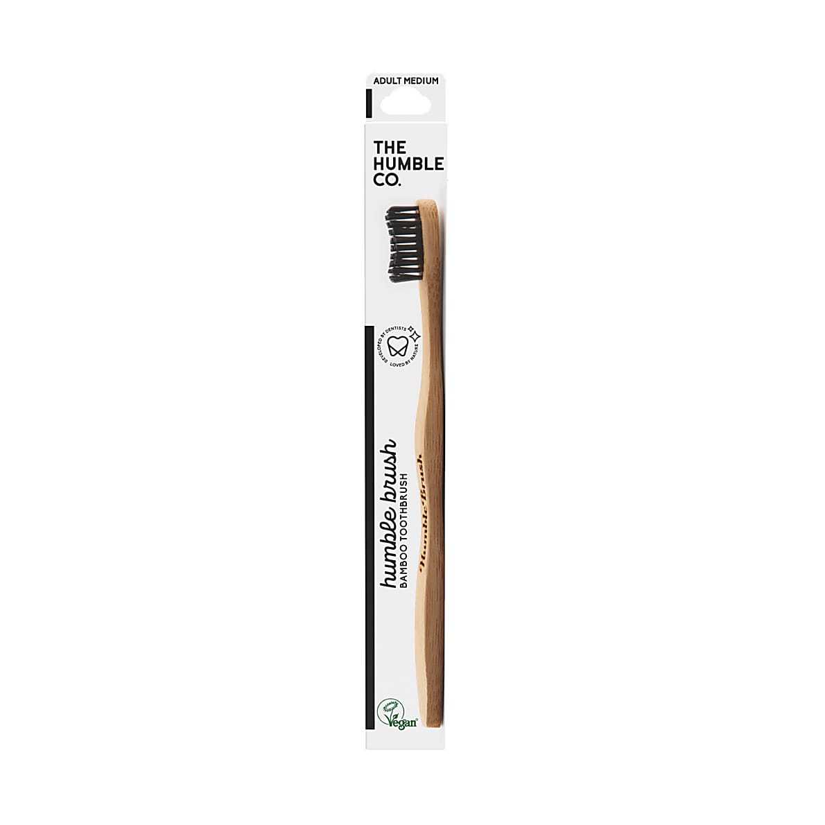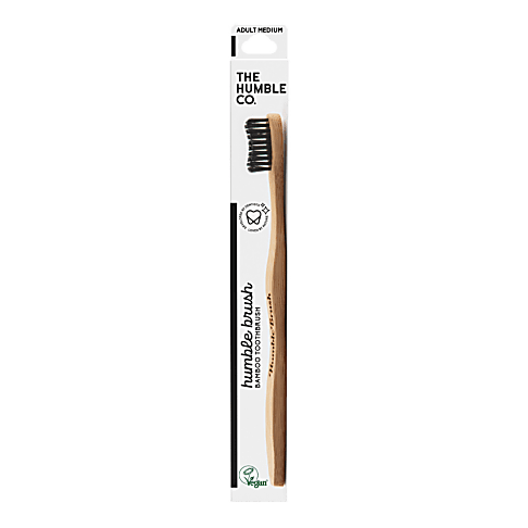 De bamboe tandenborstel met medium, BPA-vrije borstelharen van The Humble Co. doet wat die moet doen: je tanden grondig reinigen. Geen plastic. Geen nonsens. Gewoon een tandenborstel die je mond schoonmaakt en je een goed gevoel geeft. De handgreep is gemaakt van bamboe en afgewerkt met een natuurlijke waxcoating. De borstelharen zijn gemaakt van BPA-vrij nylon met 65% plantaardige materialen uit castorbonen.
