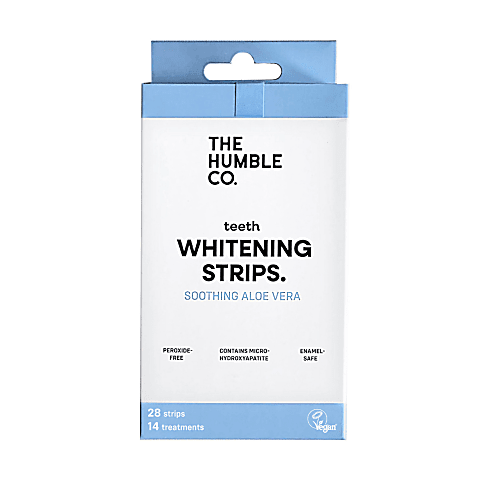 De whitening strips met aloe vera van The Humble Co. doen wat ze moeten doen: je tanden geleidelijk witter maken. De strips zijn gemaakt met een peroxidevrije, niet-agressieve formule die het glazuur helpt beschermen en je tanden geleidelijk witter maakt. Ze zijn getest op zichtbaar whitening resultaat, gecertificeerd door The Vegan Society en vrij van chemicaliën.