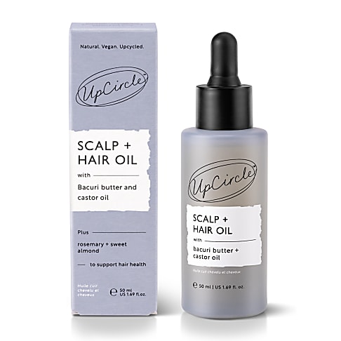 Geef je hoofdhuid een boost en versterk je haar met deze veelzijdige Scalp & Hair Oil van UpCircle. Dankzij de upcyclede bacuriboter en voedingsrijke plantaardige oliën voedt deze olie je haar diep, laat het glanzen en stimuleert het een gezonde haargroei. Gebruik het voor het wassen voor intensieve hydratatie of na het stylen voor glad, glanzend haar.
