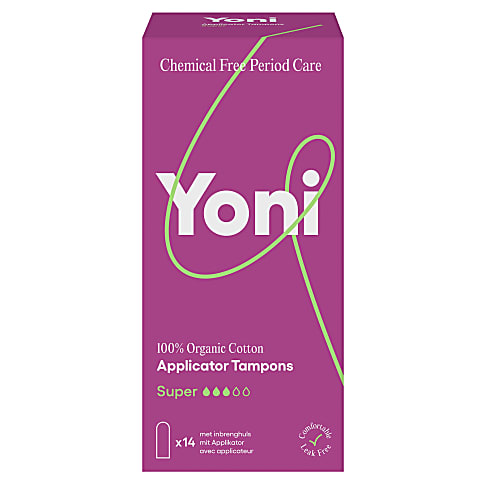 - Inhoud: 14 x biologisch katoenen tampons super met inbrenghuls